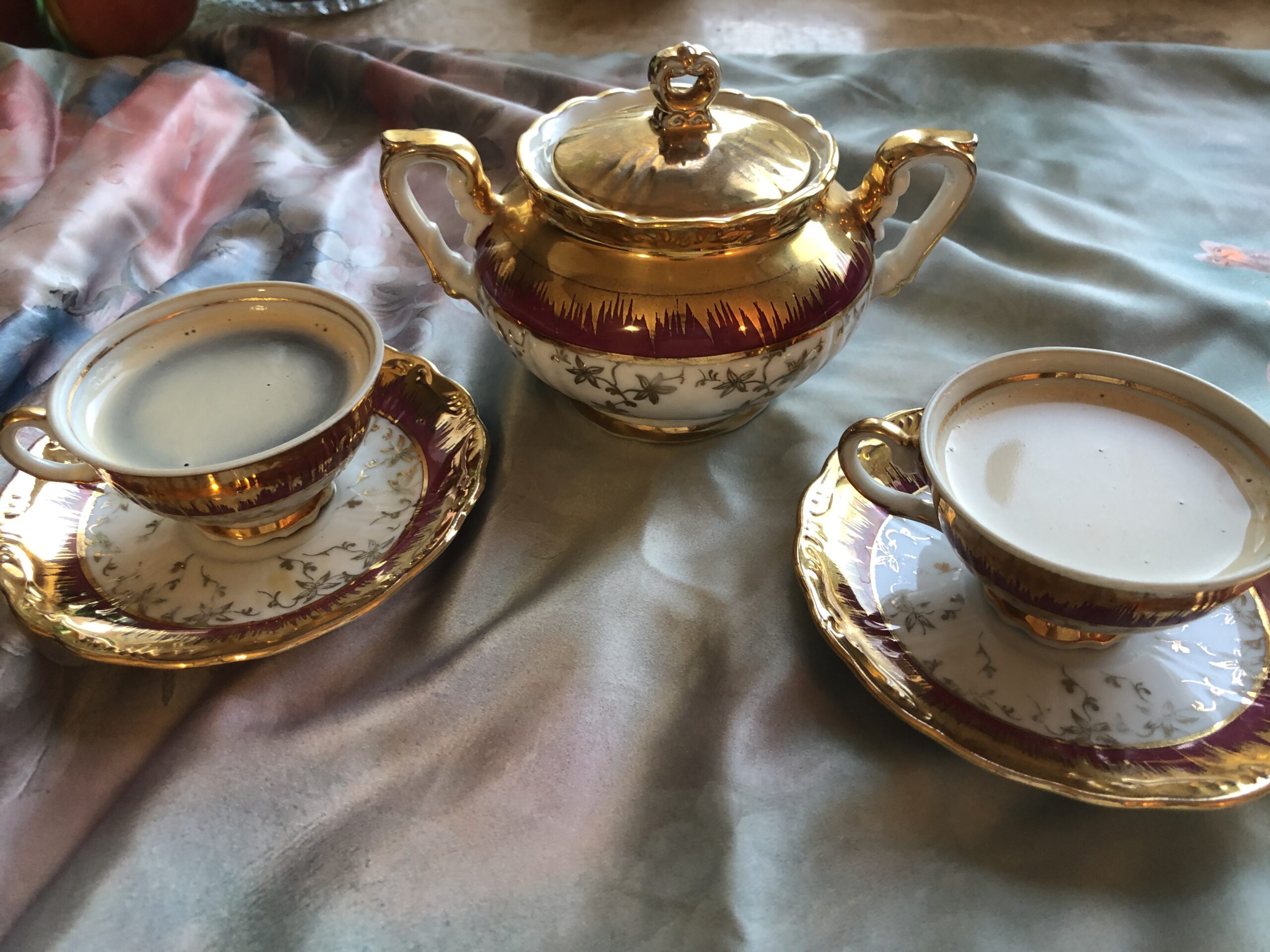 Și tot în susnumitul cadou am mai strecurat niște obiecte pentru care am o slăbiciune în repetate ori mărturisită: cești și alte ajutoare fine și uneori sclipitoare pentru organizarea cafelelor zilnice. Sunt, și de data asta, de la Fandosica :